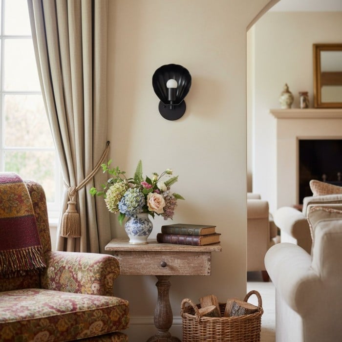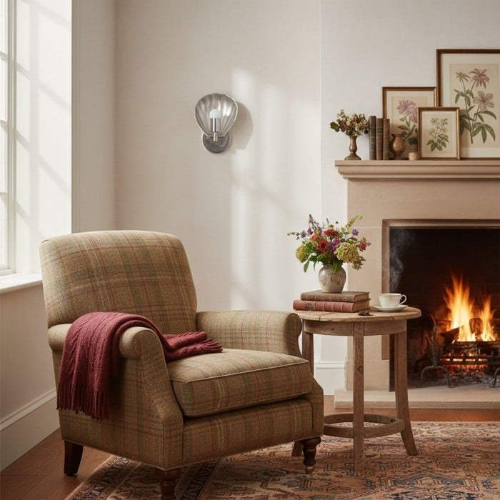 - Art-Deco-Design mit gewelltem Muschelschirm.