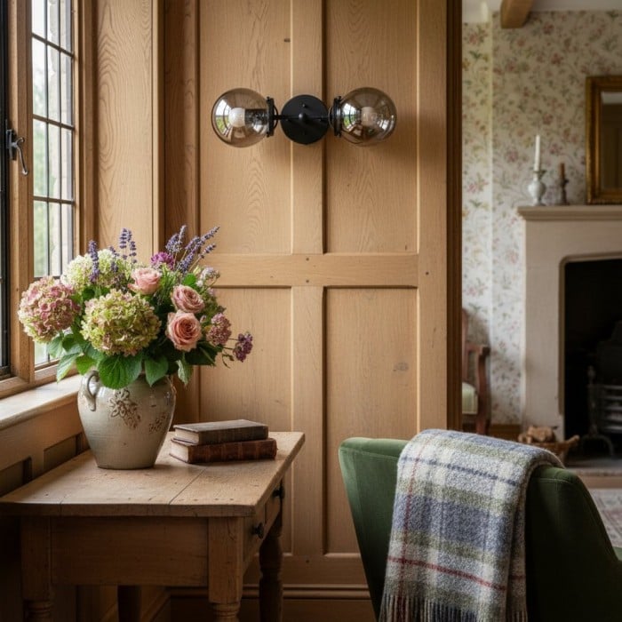 Lumio Globe Doppelkugel-Wandleuchte für den Waschtisch – rustikale Bauernhaus-Badezimmer-Wandleuchte HL1698