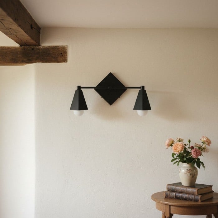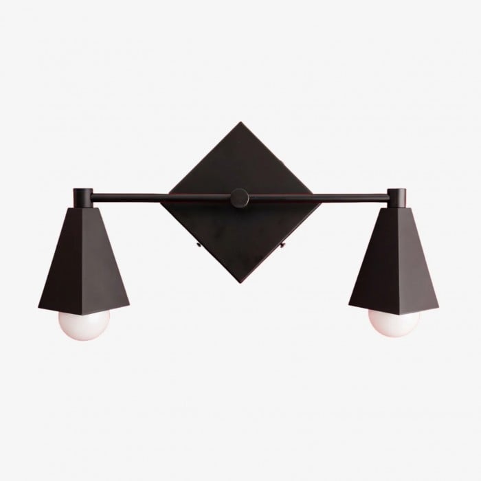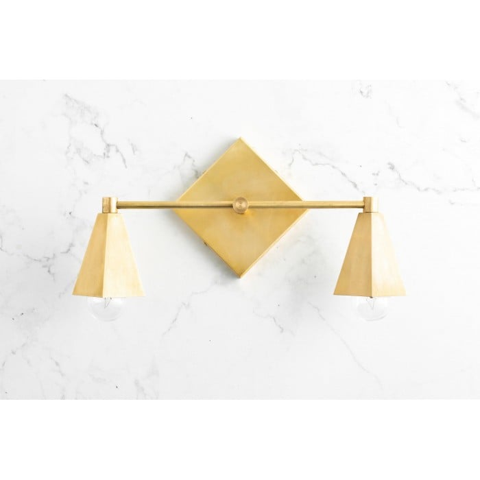 Diese geometrische Schminktischleuchte aus massivem Messing vereint klassischen Art-déco-Stil mit moderner Schlichtheit. Perfekt für moderne Badezimmer: Der quadratische Baldachin und das klare Design setzen ein edles Statement. Wählen Sie zwischen den Ausführungen Roh, Versiegeltes Messing oder Schwarz für einen bleibenden Eindruck.