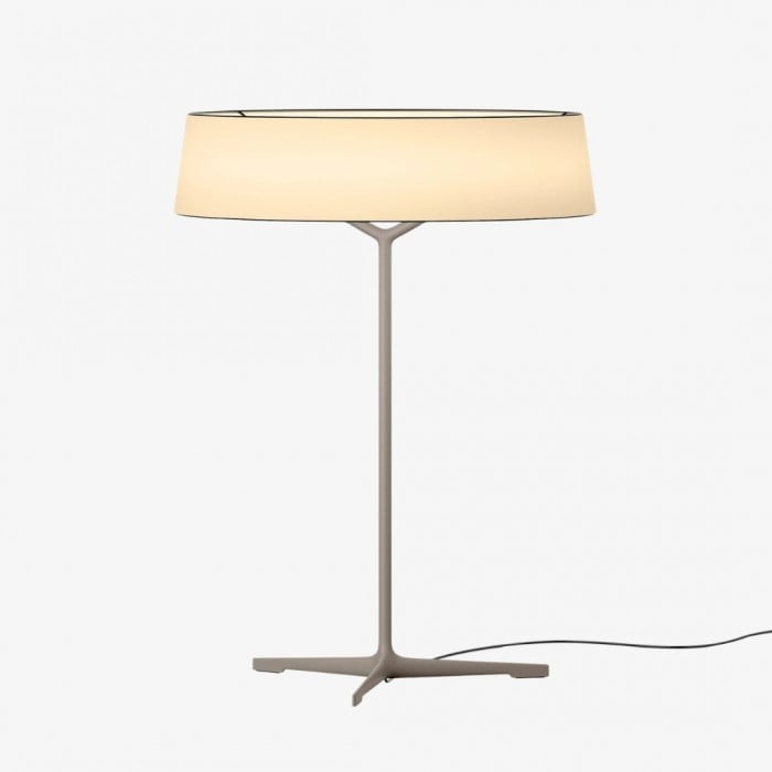Die aus Metall gefertigte Tischleuchte Delvara mit ihrem strukturierten, pergamentfarbenen Lampenschirm spendet sanftes, diffuses Licht und besticht gleichzeitig durch ihre markante architektonische Präsenz. Ihre minimalistische Silhouette wertet moderne Interieurs auf und macht sie ideal für Wohnzimmer, Schlafzimmer, Nachttische, Büros und Leseecken.