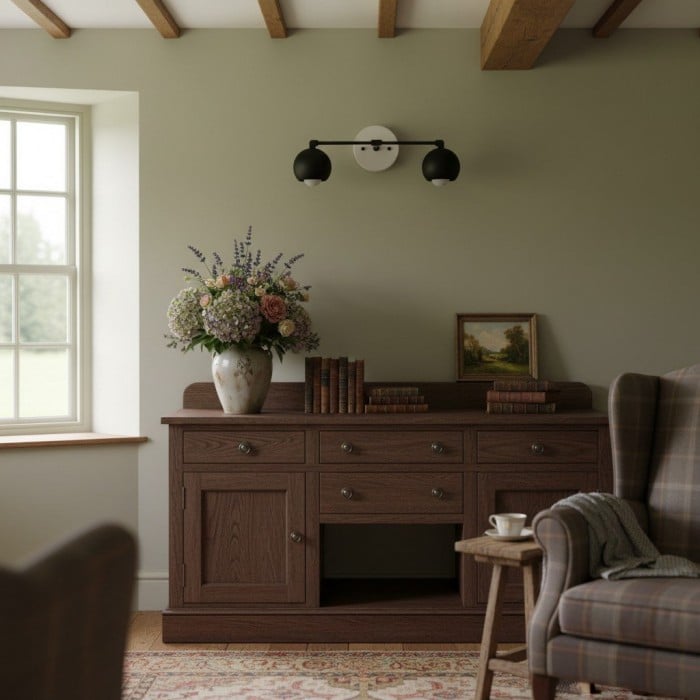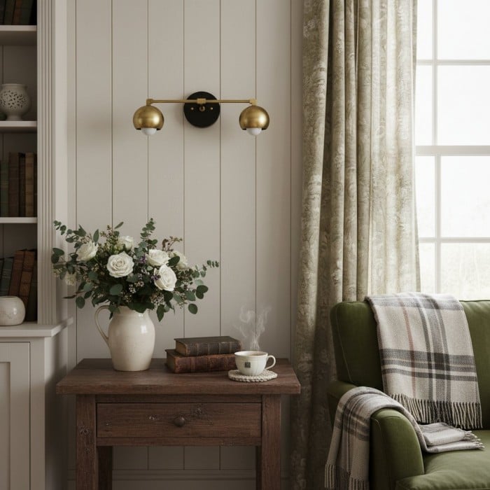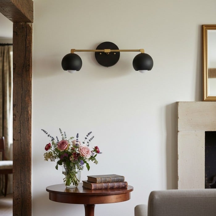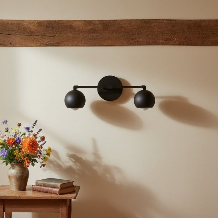 Diese dekorative Schminkleuchte vereint Mid-Century-Design mit modernem Flair. Ihre kugelförmigen Schirme erzeugen ein sanftes Licht, perfekt für die Körperpflege oder als Akzentbeleuchtung. Ob über dem Kosmetikspiegel oder an der Badezimmerwand platziert, verleiht sie Ihrer Wohnkultur Eleganz und Funktionalität.