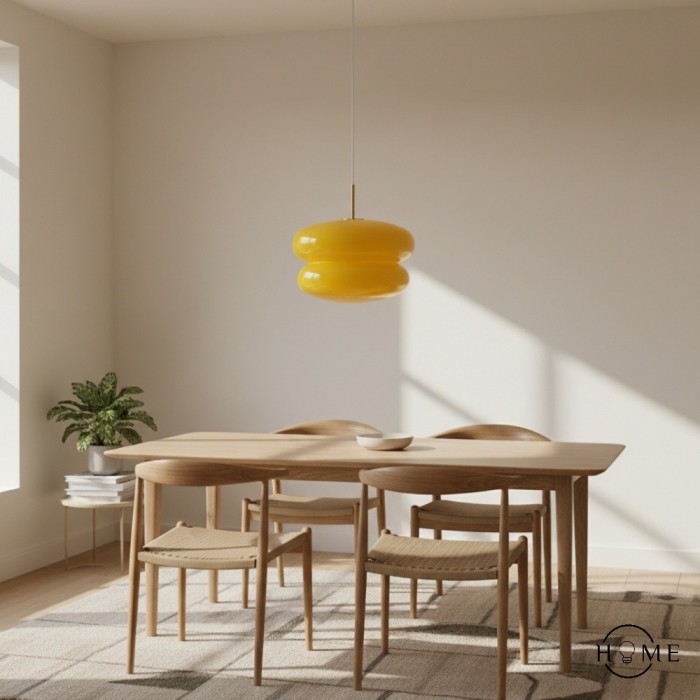 Die Opalglas-Pendelleuchte ist eine atemberaubende Ergänzung für jedes moderne Interieur. Ihr sanft gelber Opalglasschirm strahlt ein warmes, diffuses Licht aus. Diese Hängeleuchte eignet sich perfekt, um in Essbereichen, Küchen oder Wohnzimmern eine gemütliche und einladende Atmosphäre zu schaffen. Das glatte, abgerundete Design der Leuchte verleiht einen Hauch zeitgenössischer Eleganz, während das textilummantelte Kabel für Langlebigkeit und ein sauberes Finish sorgt.
