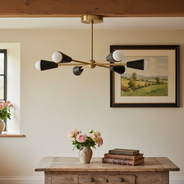 Verleihen Sie Ihrem Zuhause Opulenz und modernes Design. Dieser bündige Messing-Kronleuchter ist aus hochwertigem Messing gefertigt und bietet ein luxuriöses und langlebiges Gold-Finish, das nicht anläuft. Das kugelförmige, halbbündige Design sorgt für ausreichend Deckenbeleuchtung und setzt gleichzeitig ein starkes Stil-Statement. Seine strahlende Form zieht die Blicke auf sich und wertet das Ambiente Ihres Eingangsbereichs, Essbereichs oder modernen Schlafzimmers auf.