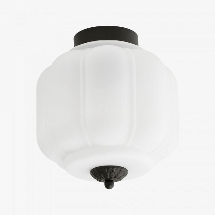 Die Deckenleuchte Eloise vereint Vintage-Charme mit modernem Design. Ihr laternenförmiges Opalglas mit zarter Ätzung verbreitet ein warmes Licht. Elegante Metalldetails verleihen dieser halbbündigen Leuchte zeitlose Eleganz. Perfekt für eine gemütliche Atmosphäre in Wohnzimmern, Schlafzimmern oder Fluren. Erhältlich in verschiedenen Farben, passend zu Ihrer Einrichtung.