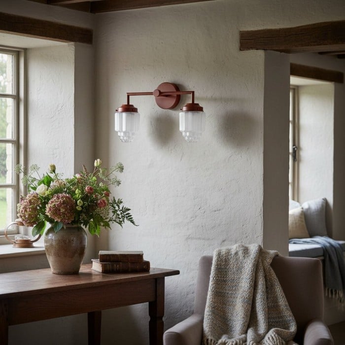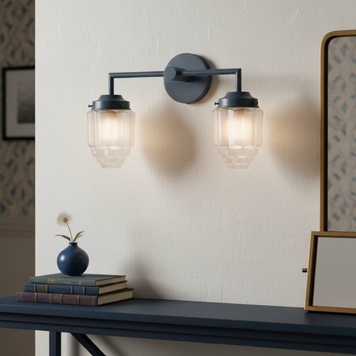 Die Tierlux Glass Schminktischleuchte spiegelt mit ihren farbenfrohen Akzenten und dem geometrischen Design die Eleganz der Art-déco-Ära wider. Mit ihren mattierten Glaskugeln im Wolkenkratzer-Stil verleiht diese Wandleuchte Ihrem Badezimmer oder Wohnraum eine lebendige Note. Eine perfekte Balance aus markantem Stil und sanfter Beleuchtung.