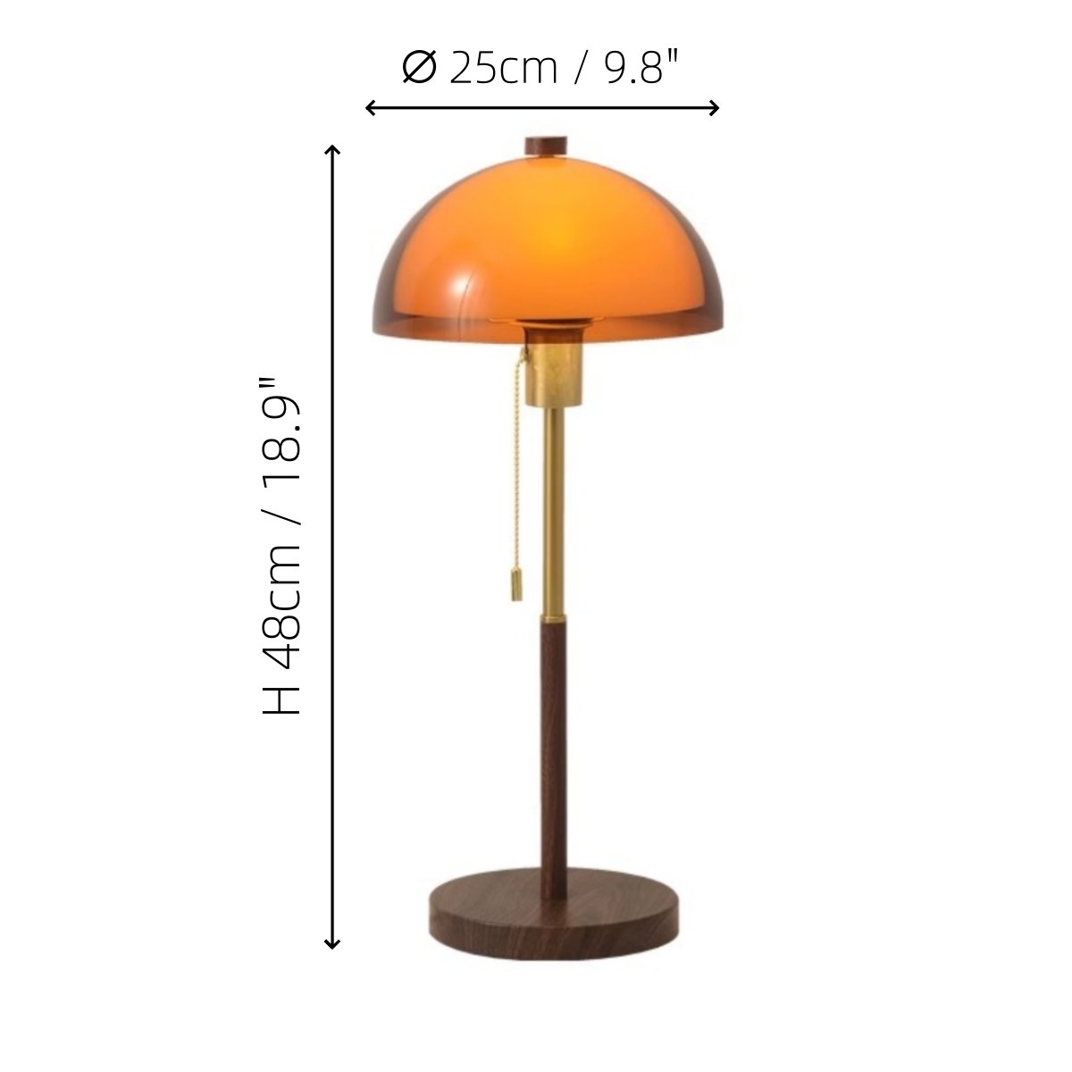 Vintage-Tischleuchte in Pilzform aus Acryl – Holzsockel und Zugmechanismus HL1837
