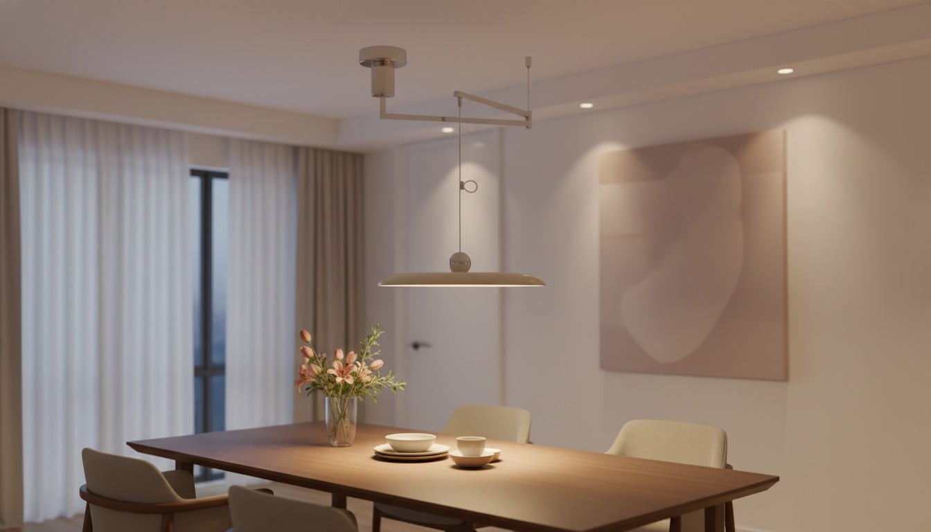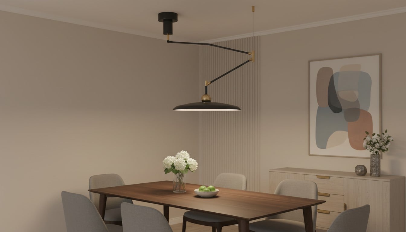 In smaller homes or multi-use rooms, one movable pendant can often do the work of several more static lighting decisions, which keeps the room simpler and visually cleaner.