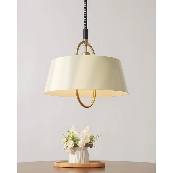 This retro classic drum-shaped retractable metal pendant lamp offers a timeless, vintage charm. Its sleek, industrial design complements rustic or industrial decor, adding a touch of rustic elegance. Ideal for hanging over dining tables, kitchen islands, or workspace areas, its adjustable height and focused light create a cozy, inviting atmosphere that enhances the room's overall warmth and charm.