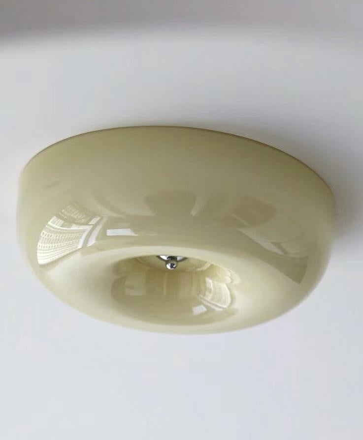 The Art Deco Cream Pudding Ceiling Light effortlessly leaves a mark in contemporary and classic settings alike. Reflecting the enduring allure of the 1920s, the white glass shades of this LED ceiling fixture boast elegant curves and lines, casting a cozy vintage glow. Offered in gold or chrome finishes, this handcrafted Art Deco Flush Mount Ceiling Light epitomizes industrial vintage flair. Whether used as kitchen, bedroom, or living room ceiling lighting, these Bauhaus ceiling lights stand out as a top-tier option.