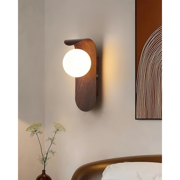 The Wabi-sabi Style Fashion Wall Lamp infuses modern sophistication into timeless design. Featuring a gracefully curved water transfer printing wood base in exquisite Wood Color or rich Walnut Color finishes, it cradles a frosted Acrylic globe that diffuses light warmly. The lamp’s unique blend of contemporary aesthetics and artisanal craftsmanship makes it a statement piece that transforms any space with its subtle elegance and inviting glow.