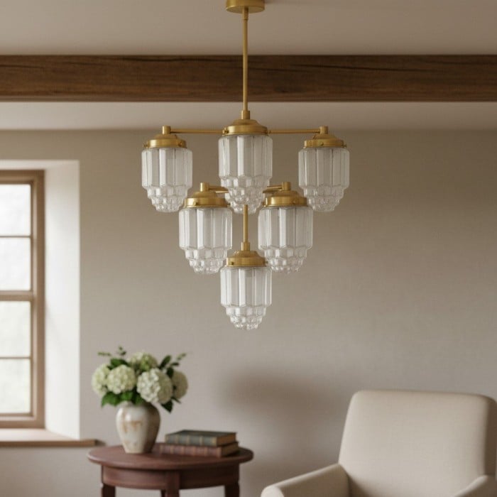 Tierlux Glass Textured Brass Chandelier – Timeless Lighting with Style HL1737