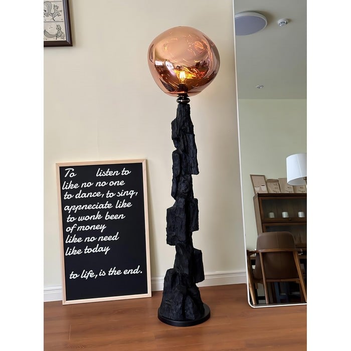 The modern irregular lava floor lamp creates a beautiful and hypnotic effect with its illuminated, melted glass-like sheen when switched on and a mirror effect when switched off. An exquisite statement piece, it will bring a warm glow to any room.