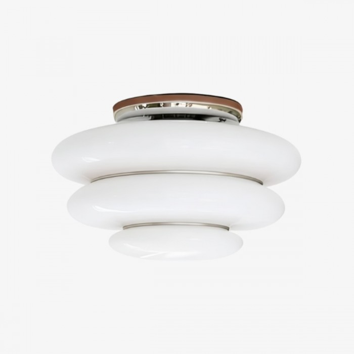 The Cirren Ceiling Lamp showcases a sculptural circular form inspired by layered geometry, creating a refined visual rhythm on the ceiling. Its stacked ring design softly diffuses light, delivering balanced ambient illumination that enhances modern interiors, including living rooms and entryways.