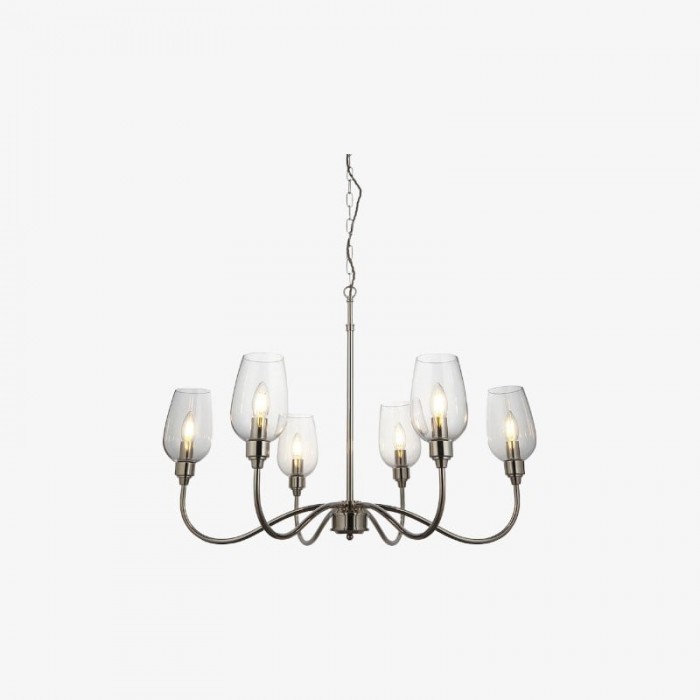 Elevate your space with this stunning 6-light pendant that marries timeless Art Deco elegance with modern functionality. Featuring clear blown glass shades and a finely plated metal frame, this fixture offers a refined visual balance and luxurious feel.