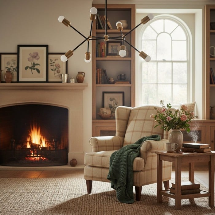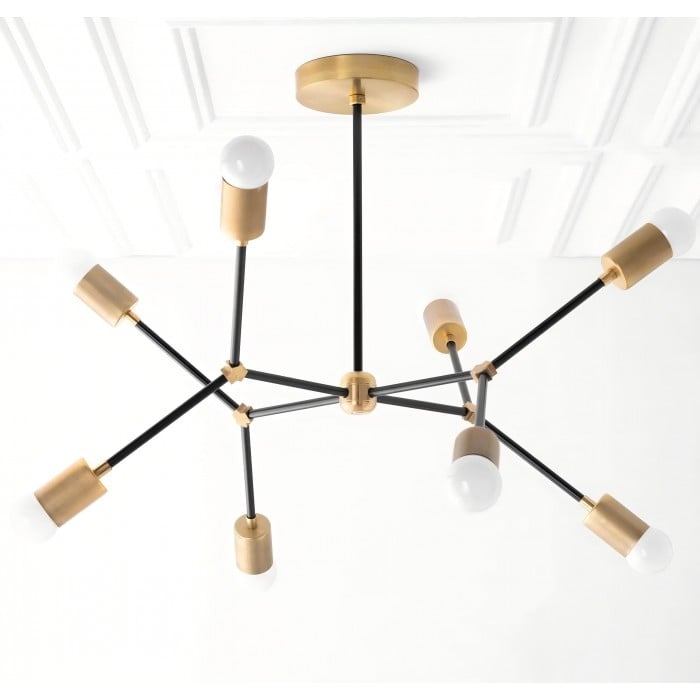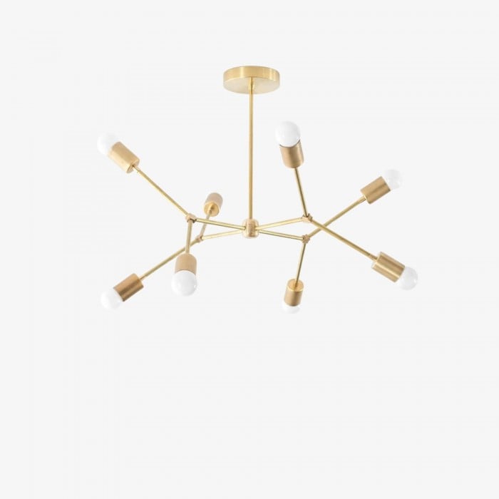 Elevate your interior with our stunning modern geometric chandelier. Crafted in warm brass tones, this ceiling fixture features an intricate open-frame design that creates captivating light patterns. Its contemporary aesthetic blends perfectly with various decor styles from mid-century modern to minimalist. The gold finish adds a touch of luxury to any space, making it ideal for dining rooms, living areas, or entryways. This statement piece combines artistic design with functional lighting to transform your home's ambiance.