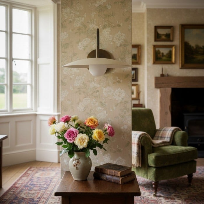 Elevate your walls with this sculptural sconce blending modern minimalism and elegant design. A slender antique-brass arm sweeps from a round backplate to cradle a wide, matte-cream metal disc. The frosted globe emits soft, ambient glow perfect for flanking mirrors, brightening hallways, or creating warm bedside accents. Transform any space into a refined retreat.