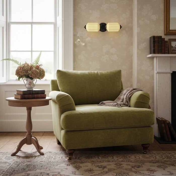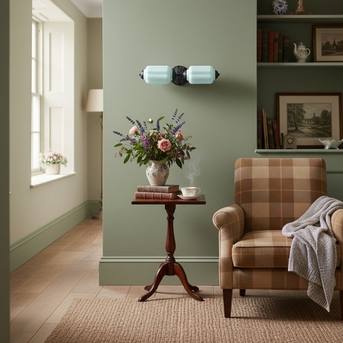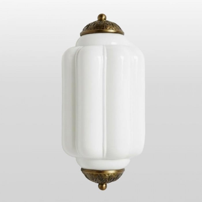 With its smooth milk glass and antique brass base, the Eloise wall sconce exudes vintage elegance. Designed to offer a soft, diffused light, it brings sophistication to bedrooms, hallways, and intimate living spaces.