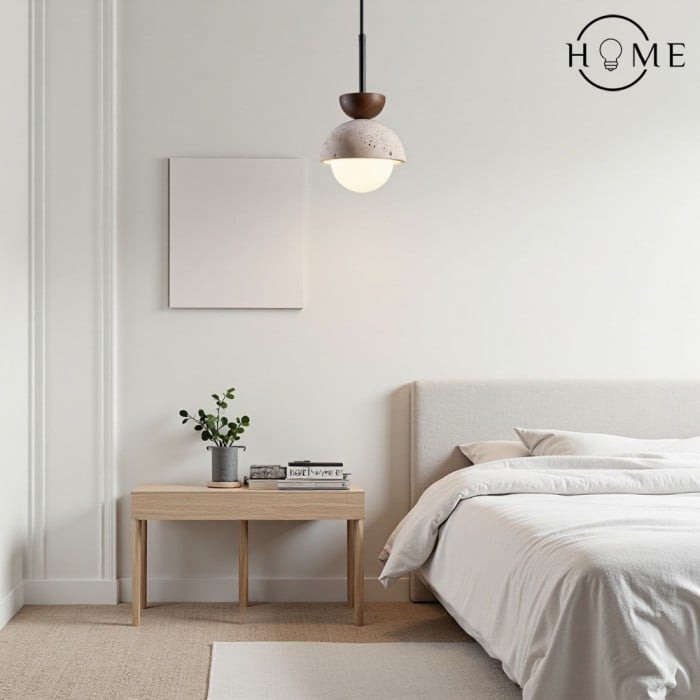 With its delicate yet durable design, the Pendant Lamp is perfect for hanging above kitchen islands, dining tables, or in entryways, offering both style and functionality. Its minimalist shape is versatile, complementing a variety of interior styles, from rustic to modern. The combination of smooth wood and textured travertine creates a striking contrast, while the soft glow from the spherical frosted glass shade adds a warm and inviting ambiance to any room.