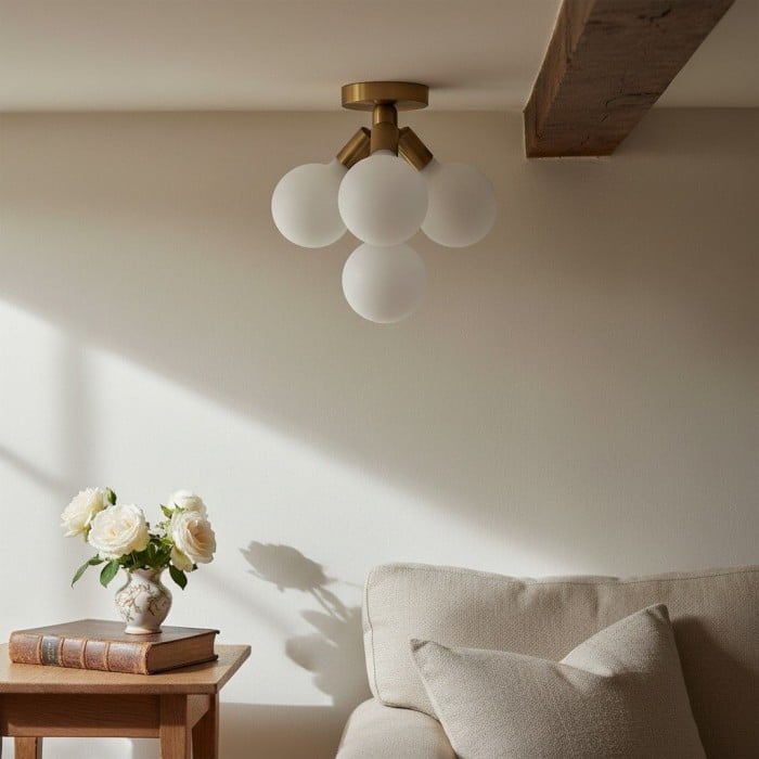 The Glorica Glass Flush Mount Light blends timeless elegance with modern charm. A solid brass fixture paired with a smooth white globe shade casts soft ambient light, perfect for dining rooms, bedrooms, or entryways. Its versatile finishes and durable design make it a refined addition to any home.