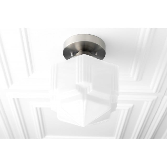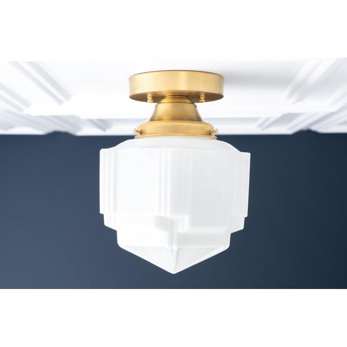 Enhance your interior with this Art Deco ceiling light featuring a soft-finished brass frame and opal glass globe. Its sleek design adds subtle sophistication to modern kitchens, living rooms, or hallways, delivering warm ambient light with a timeless, elegant look.