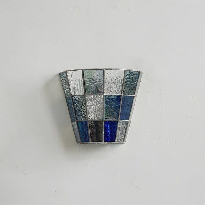 The Fun Guy 732 Wall Lamp features a beautifully crafted mosaic design with an elegant conical shape. The glass tiles are meticulously arranged, creating an inviting light pattern that enhances any space with both style and function. The interplay between transparent and frosted glass allows for soft, diffused lighting, adding warmth and sophistication to your wall. The sleek, modern metal framing complements the intricate glasswork, making this lamp a versatile addition to a variety of interior designs.