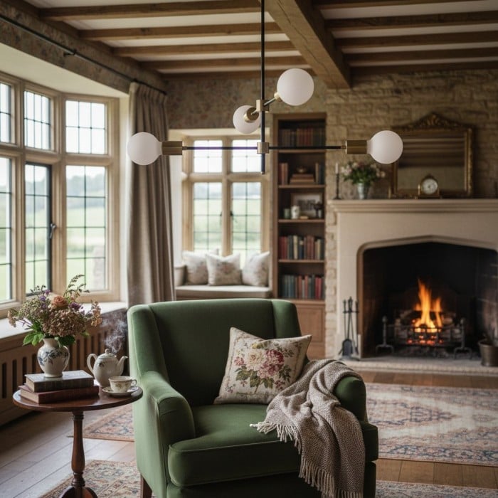 Transform your space with this black and brass chandelier, designed with elegant globe shades. Its contemporary silhouette makes it a striking focal point above dining tables, in foyers, or open living spaces. A versatile hanging light fixture that adds modern refinement to your home.