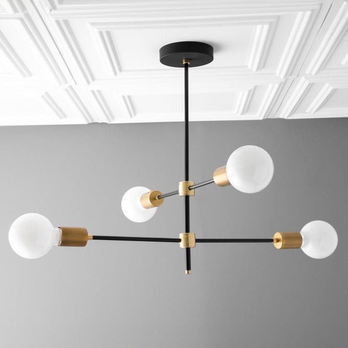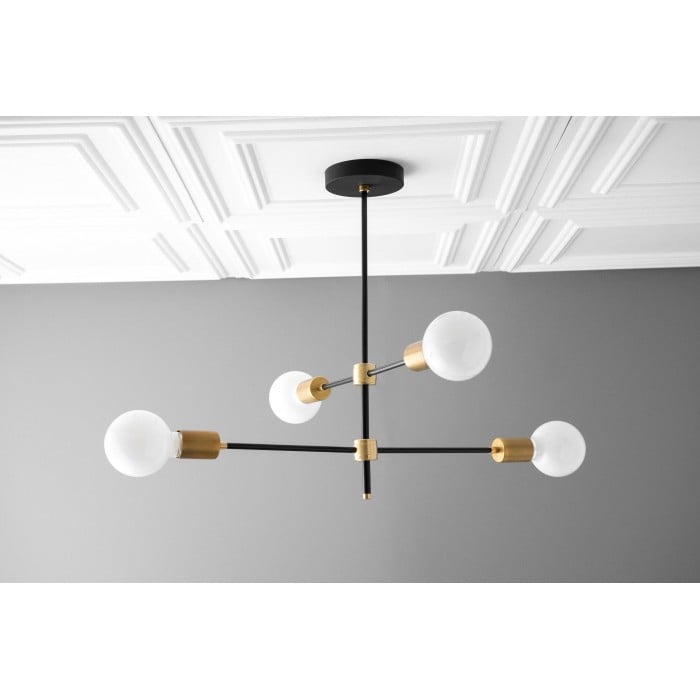 Mobilux Line Black and Brass Chandelier - Contemporary Globe Ceiling Hanging Light HL1699