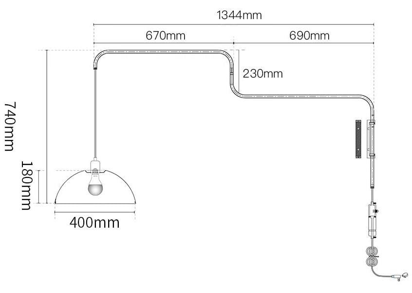Folding Retractable Wall Lamp Size
