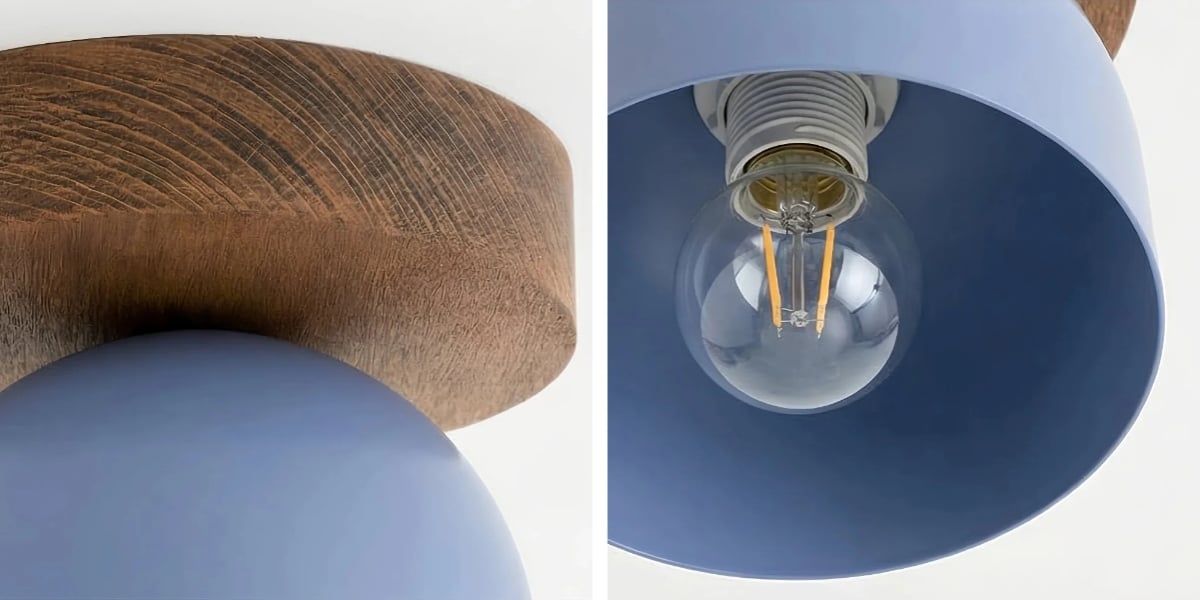 This ceiling light fuses natural wood warmth with modern minimalism. Its clean dome silhouette softly illuminates living rooms, bedrooms, entryways, or kitchens, creating a cozy and refined ambiance ideal for contemporary interiors.