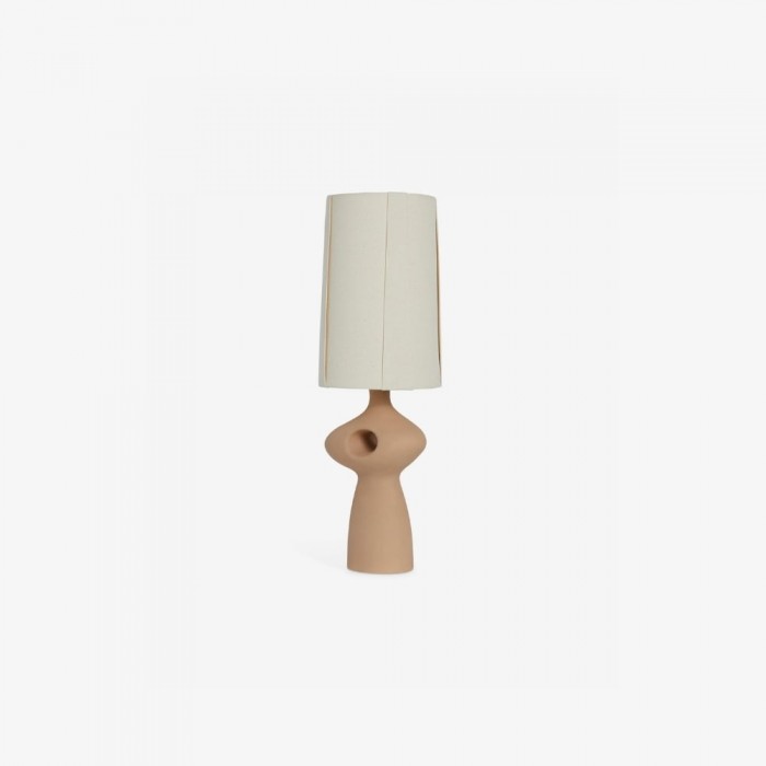 Bring a sculptural statement to your space with this table lamp. Its organic, curved base features a dramatic cutout and topped with a soft ivory linen shade. Crafted in ceramic with options in rose or terracotta finish, it fits beautifully in living rooms, bedrooms, or entryways.