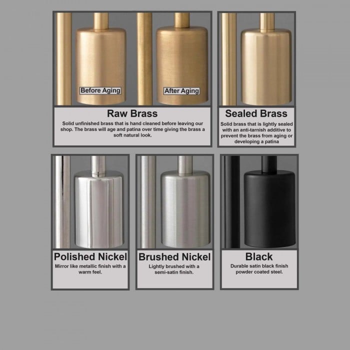 - Sealed Brass - Solid brass that is lightly sealed with an anti-tarnish additive to prevent the brass from aging or developing a patina.