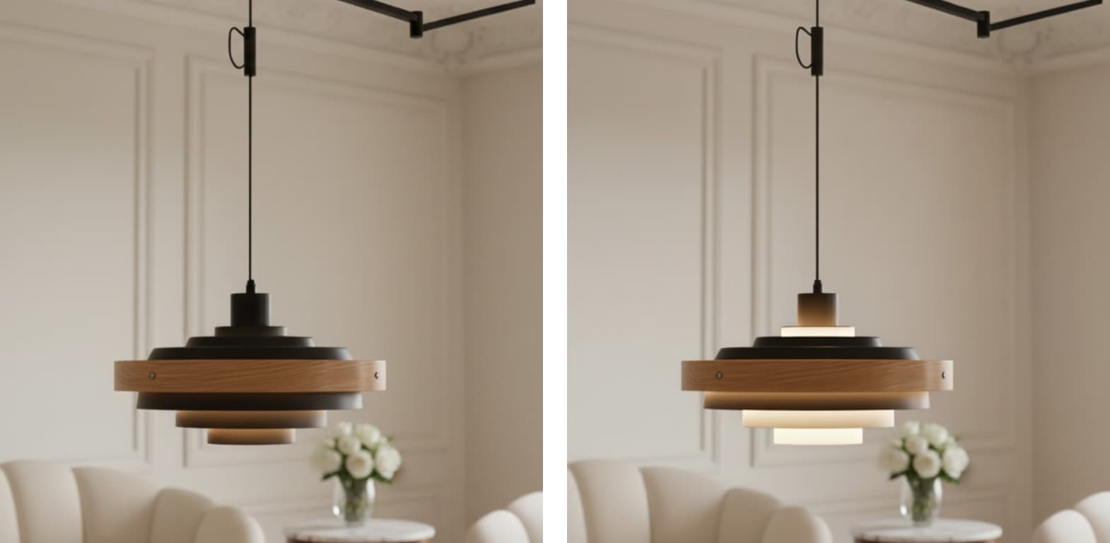 - Adjustable Swing Arm: Provides flexible directional lighting for dining, working, or ambient use.