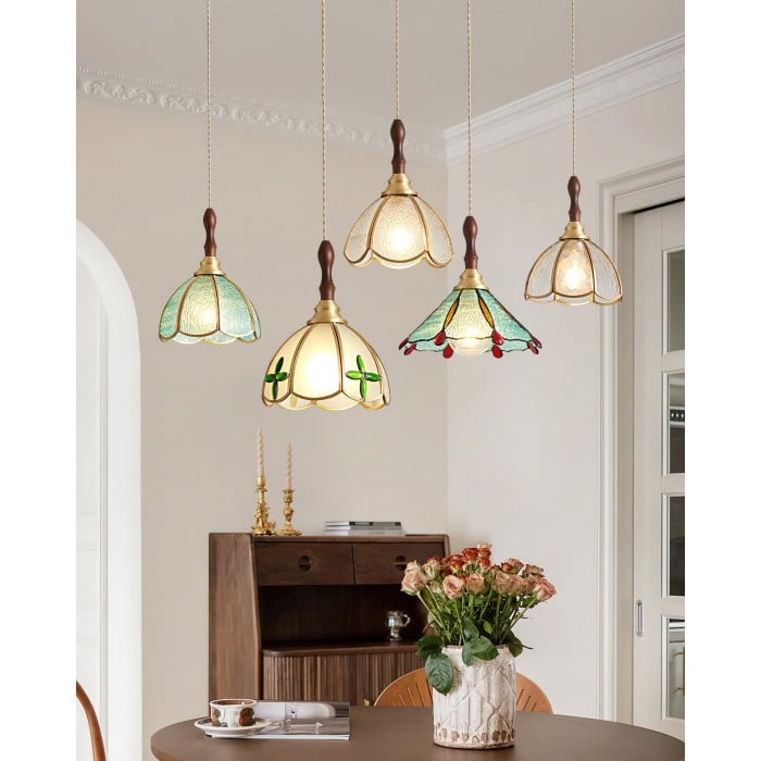 This vintage tiffany stained glass pendant lamp offers a captivating, artistic focal point for your home. Its intricate, handcrafted design showcases a beautiful array of vibrant colors and patterns, casting a mesmerizing, kaleidoscope-like glow. Ideal for hanging over dining tables, living room spaces, or entryways, its timeless elegance and unique charm add a sophisticated, artistic touch to your decor.