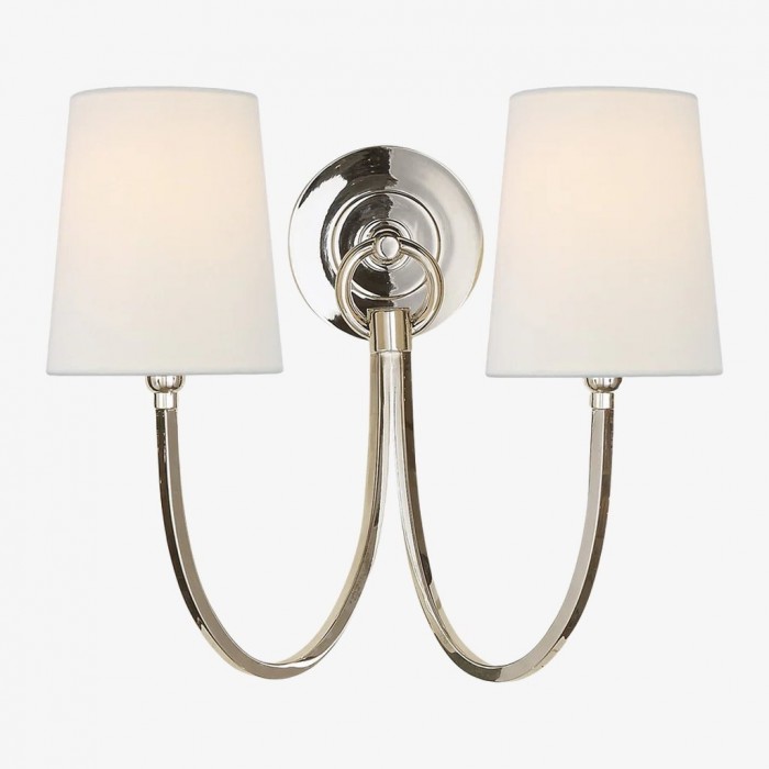This double wall sconce blends sculpted arms with clean, fabric-inspired shades to create a soft and inviting glow. Its balanced silhouette adds modern classic elegance while offering gentle ambient illumination. Ideal for bedrooms, hallways, vanity areas, or any space needing warm, refined lighting.