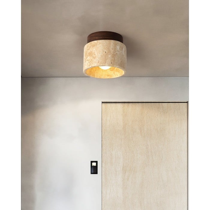 This Stone Ceiling Light meticulously handcrafted from natural cave stone, epitomizes elegance with its raw, untouched appeal. Each stone is selected for its unique natural characteristics and then carefully hand-polished to highlight its intrinsic patterns and colors. The integration of a warm wooden base complements the cool, textured stone, creating a harmonious blend of natural elements that enhance any interior design scheme.