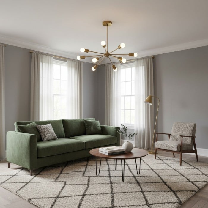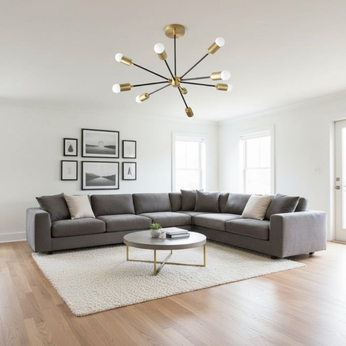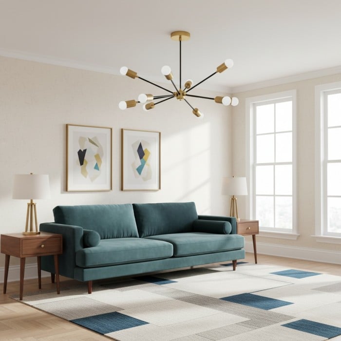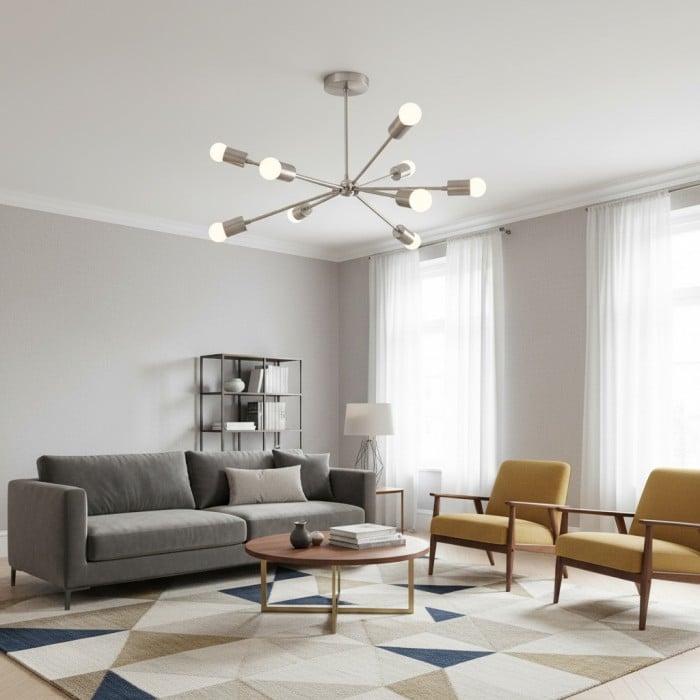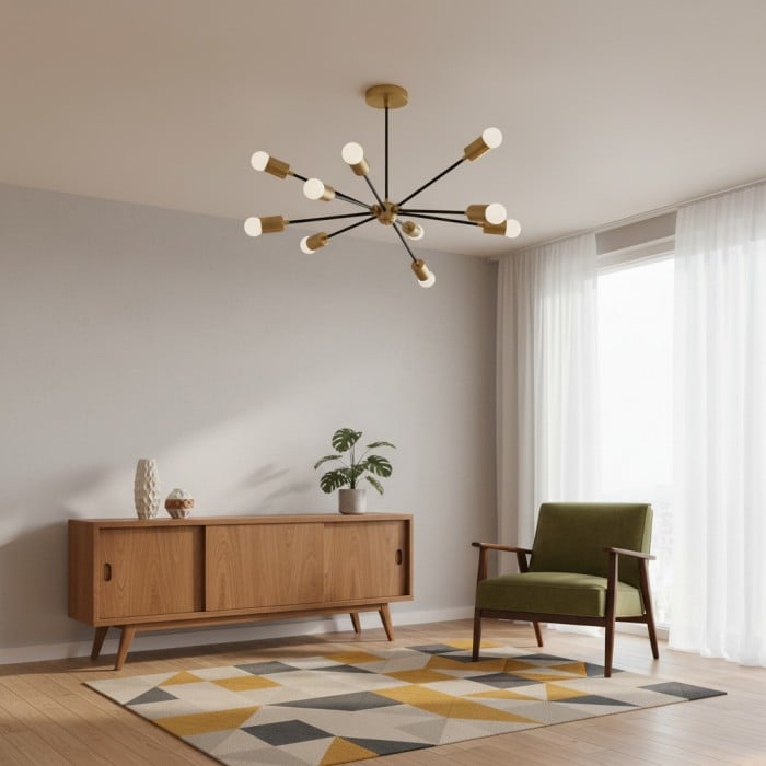 Mobilux Line Mid Century Sputnik Chandelier - Modern Brass Ceiling Light HL1679