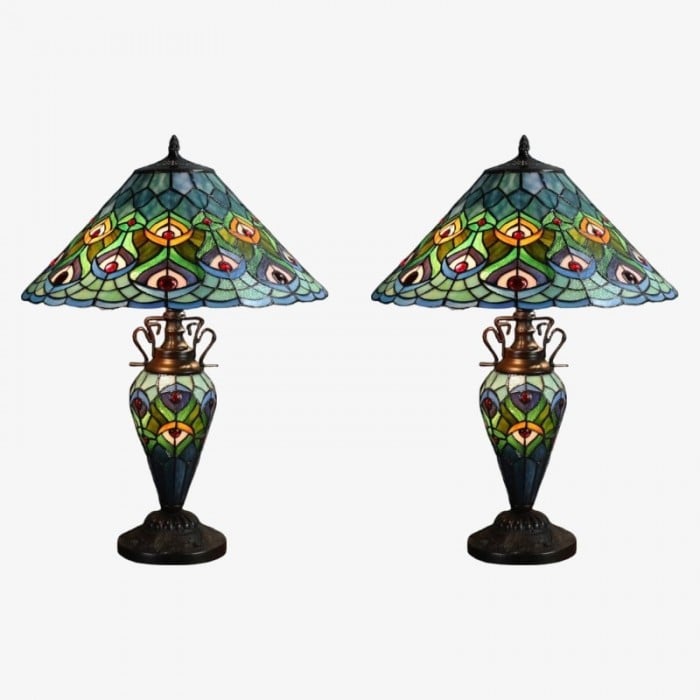 TF Oldbury Desk Lamp - Handcrafted Stained Glass Lamp for Bedroom Reading HL2178