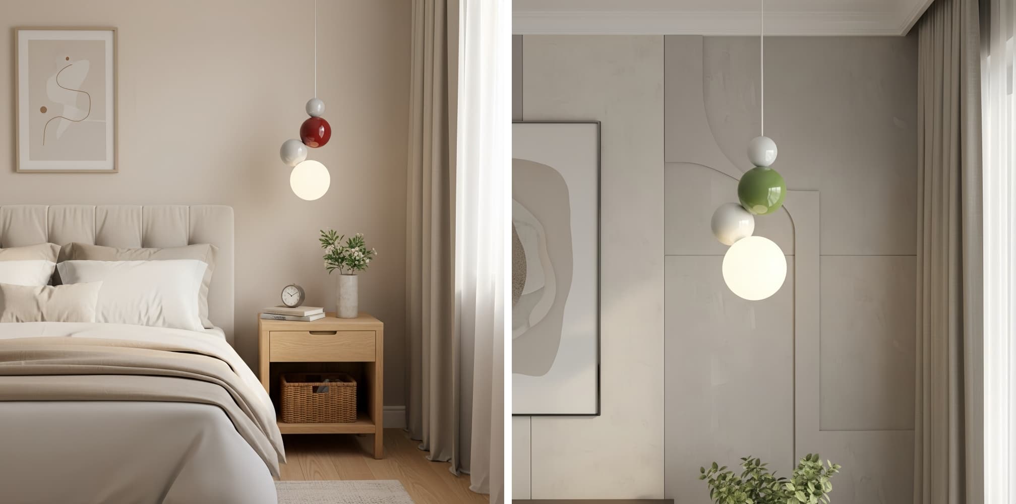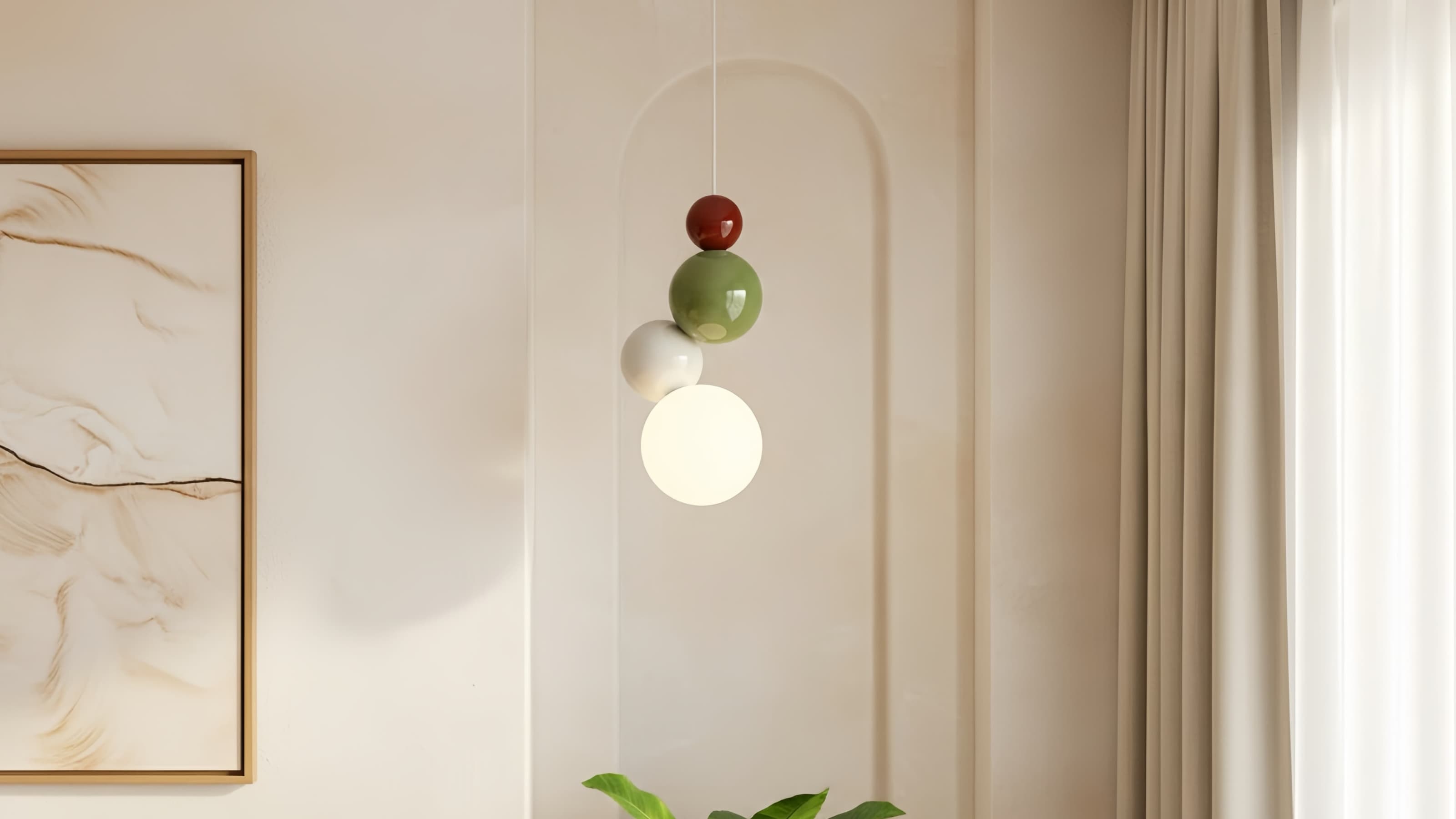 This Nordic-style globe pendant lamp blends sleek design with warm illumination. Its minimalist silhouette and refined globe shades create a sophisticated focal point, adding modern elegance and a cozy ambiance to bedrooms, living rooms, or lounge areas.