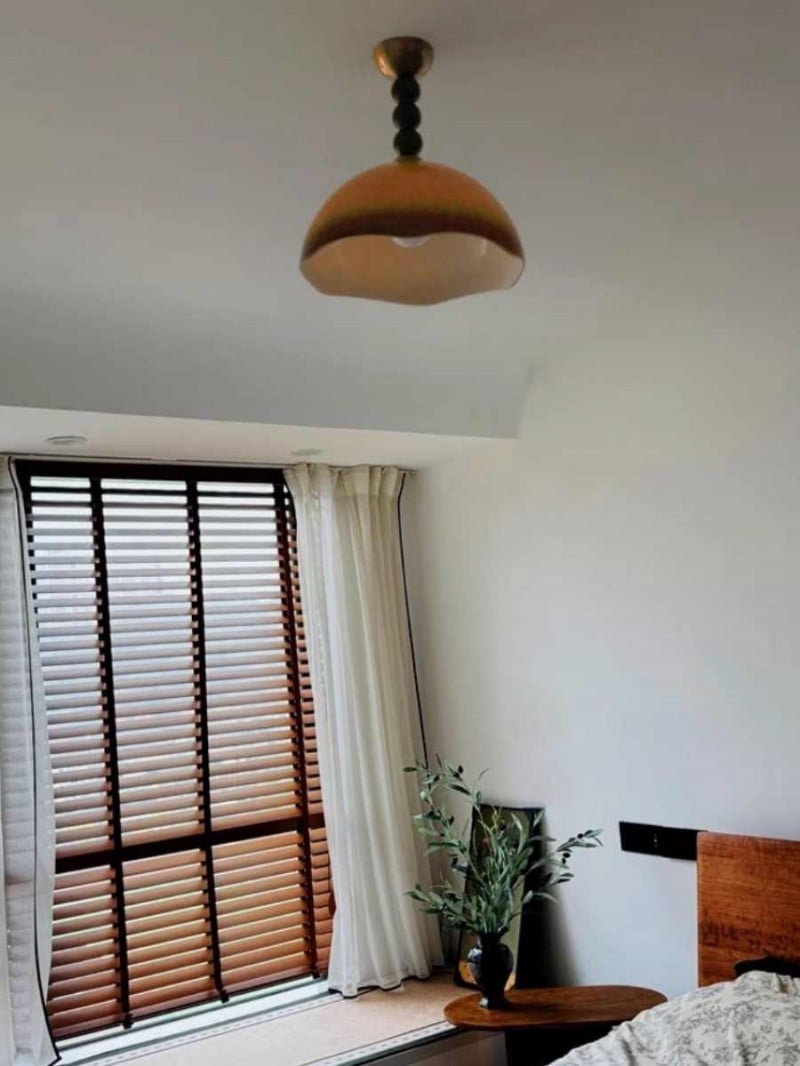 This Wave Ceiling Light, artfully combines vintage charm with modern design. Its large, wave-like dome in a warm coral hue sets a comforting, ambient tone to any space. Below the dome, a series of dark wooden beads create a striking contrast, adding a touch of rustic refinement. Ideal for both contemporary and traditional interiors, this lamp offers both aesthetic versatility and timeless style, making it a superb choice for enhancing the ambience of your living room or dining area.