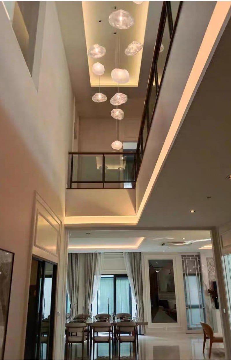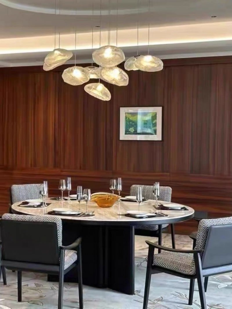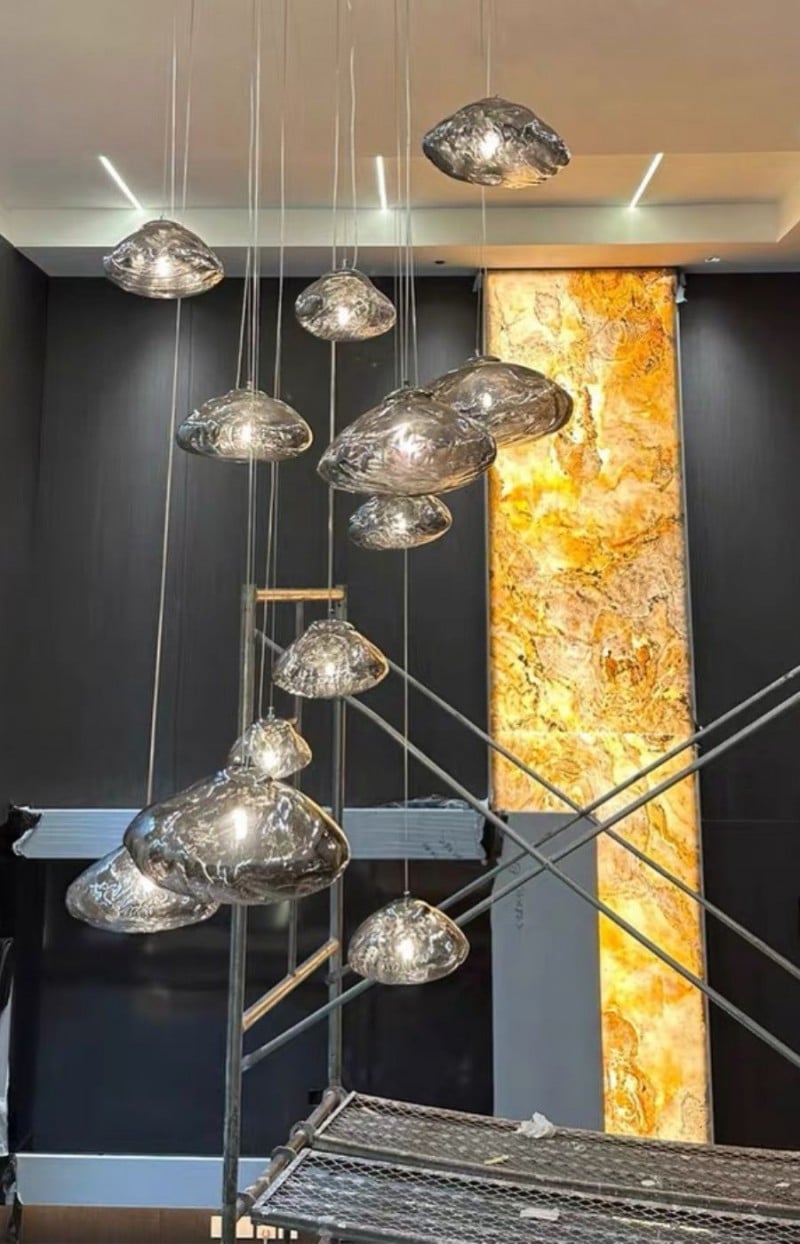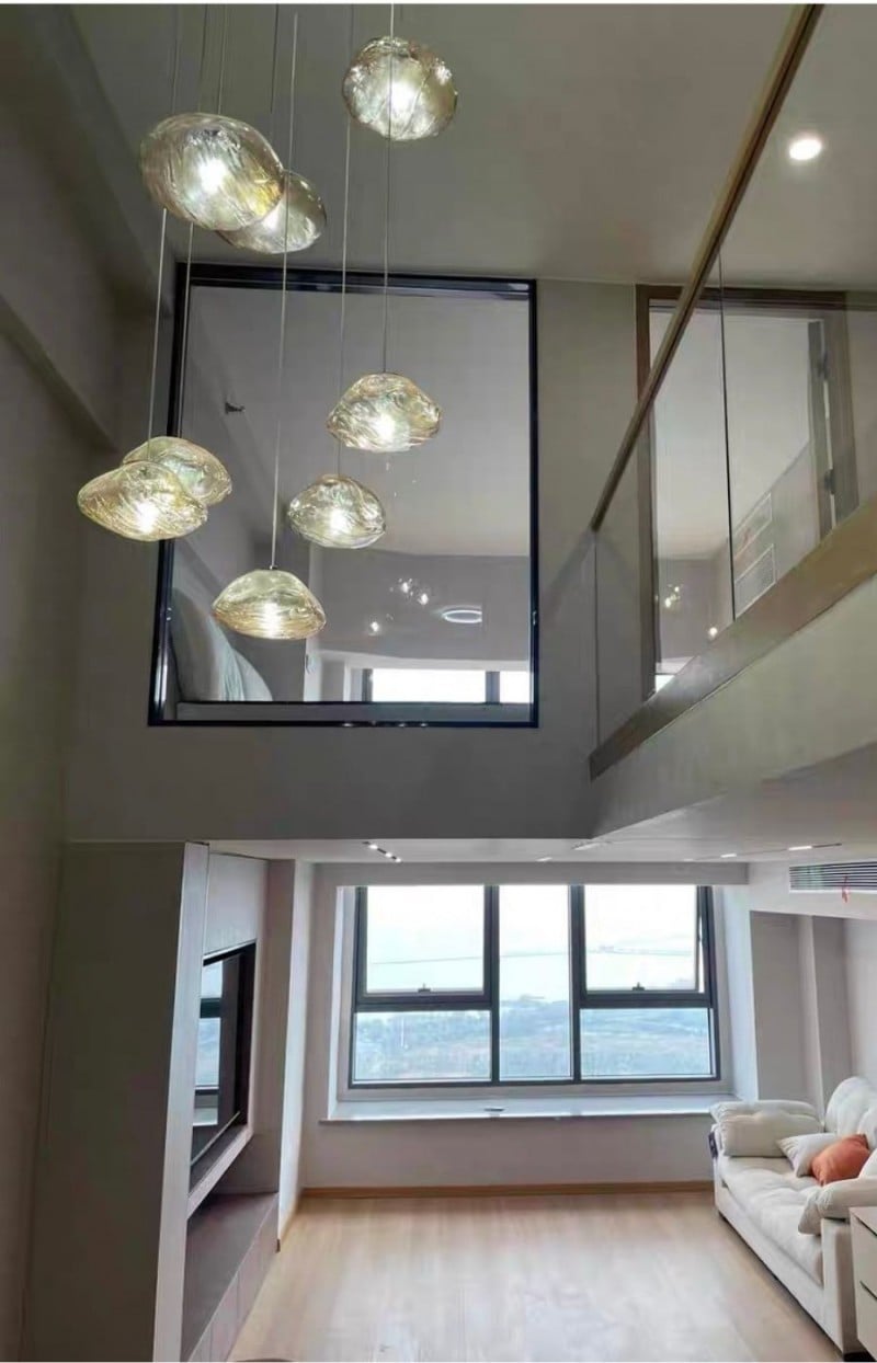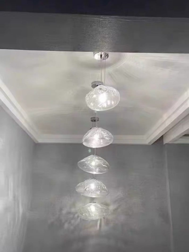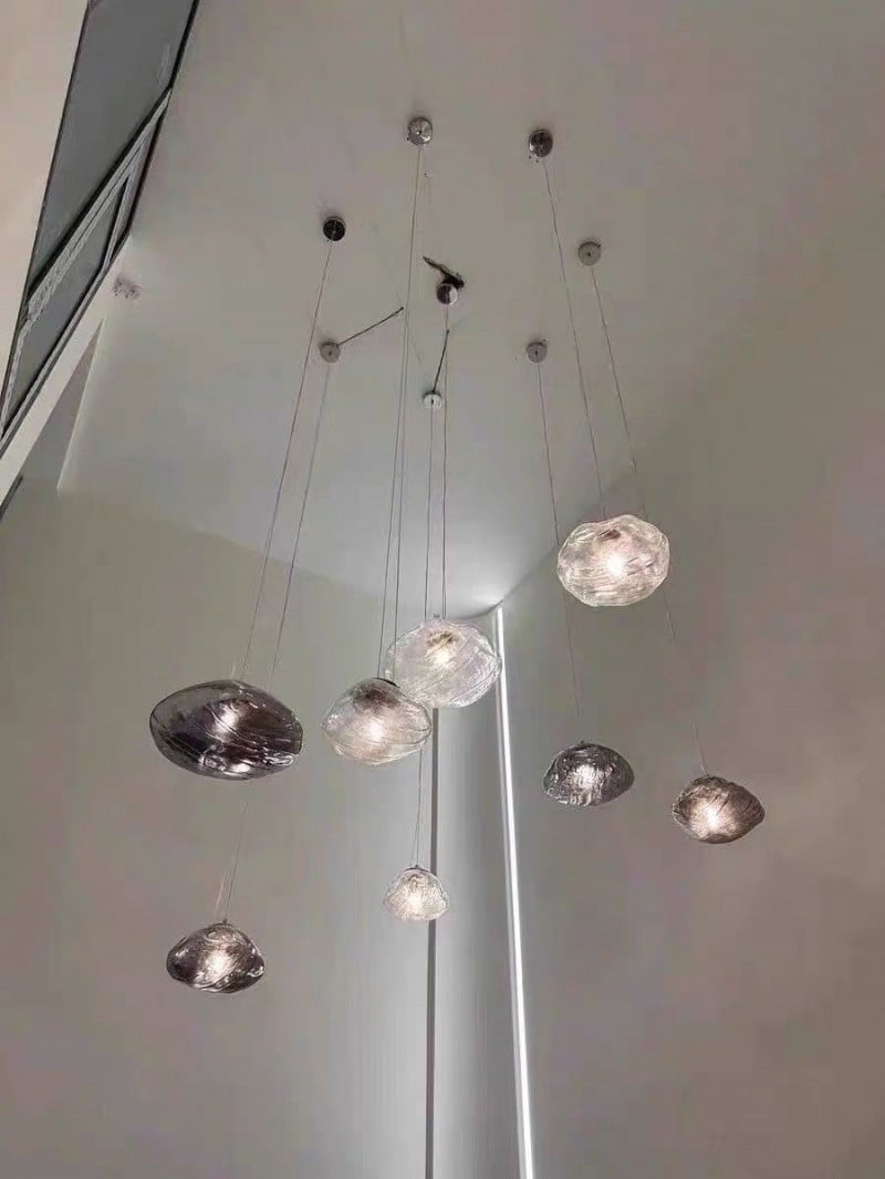 Lámpara de araña de vidrio irregular con múltiples cabezales y burbujas HL338