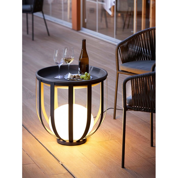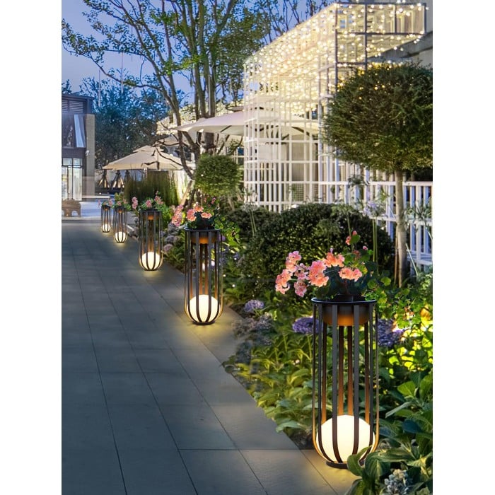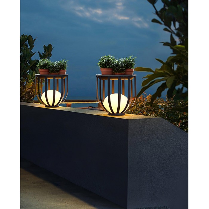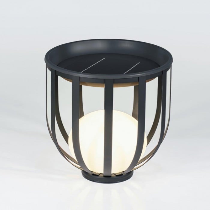 La lámpara solar impermeable para exteriores con panel solar cuenta con una pantalla de acrílico y un LED integrado alimentado por un panel solar. Está optimizada con un revestimiento doble para una mayor resistencia a la corrosión y a la intemperie. También tiene la opción de agregar una bandeja para usarla como mesa o macetero para plantas reales o artificiales.