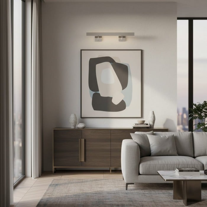 Ilumine sus preciadas obras de arte con nuestro aplique minimalista delgado para cuadros - Lámpara de arte metálica. Esta elegante lámpara cuenta con un diseño minimalista que se integra a la perfección en cualquier espacio moderno o contemporáneo. Fabricada en metal de alta calidad, irradia lujo y durabilidad. Su perfil largo y delgado garantiza una iluminación enfocada y uniforme en sus cuadros, resaltando cada detalle. Gracias a sus funciones ajustables, puede dirigir fácilmente la luz para lograr el efecto de iluminación perfecto para sus obras de arte, lo que la convierte en una opción imprescindible para galerías de arte, salas de estar u oficinas.