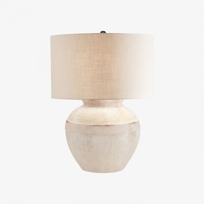 - Pantalla (lámpara blanca): Pantalla texturizada de lados rectos Gallery en color arena
