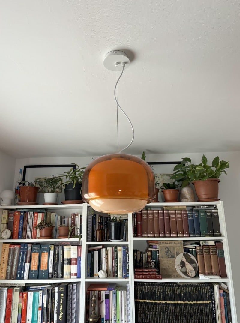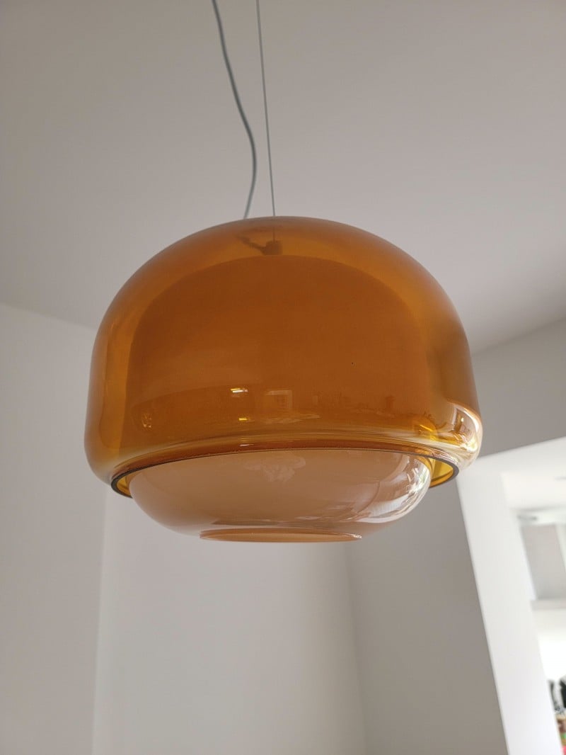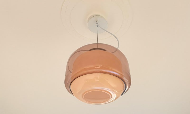 La lámpara colgante Double Sphere reinventa las formas orgánicas de los años 70 con elegancia moderna. Sus esferas de vidrio anidadas en forma de hongo combinan transparencia y opacidad para crear una luz suave y acogedora. Esta lámpara de vidrio coloreado soplado a mano presenta variaciones artesanales únicas en cada pieza. Perfecta para crear ambientes cálidos y acogedores en comedores y salas de estar.