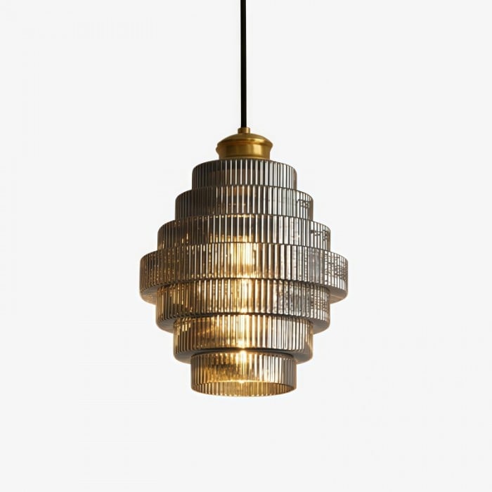 Añade un toque artístico a cualquier espacio con la lámpara colgante con forma de botella de vidrio. Con una silueta única en forma de botella y vidrio con rayas verticales, esta lámpara combina inspiración vintage con un toque moderno. Fabricada en vidrio y metal resistentes, proyecta una luz cálida y decorativa que realza cocinas, comedores, entradas y rincones creativos.