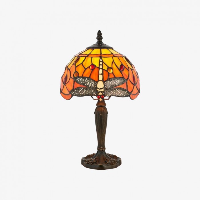 Lámpara de mesa TF Dragonfly tallada a mano - Vitral vintage para dormitorio o sala de estar HL2159