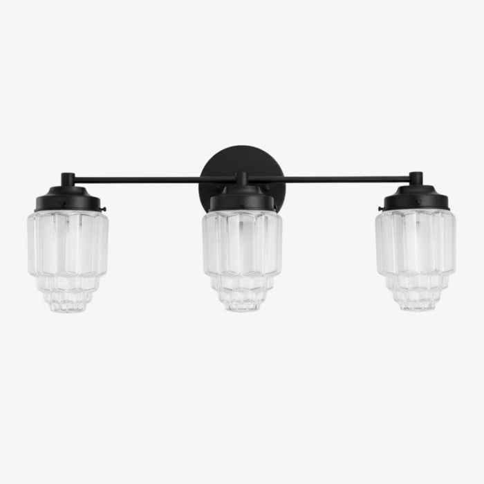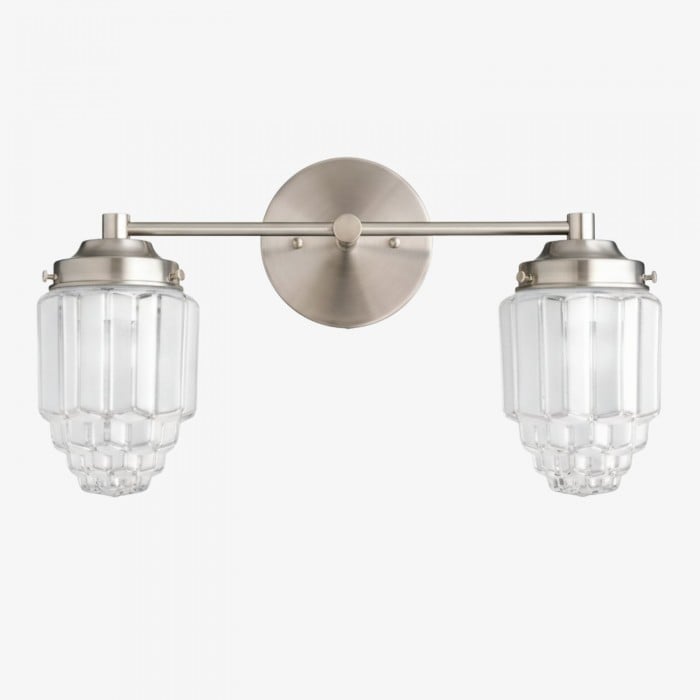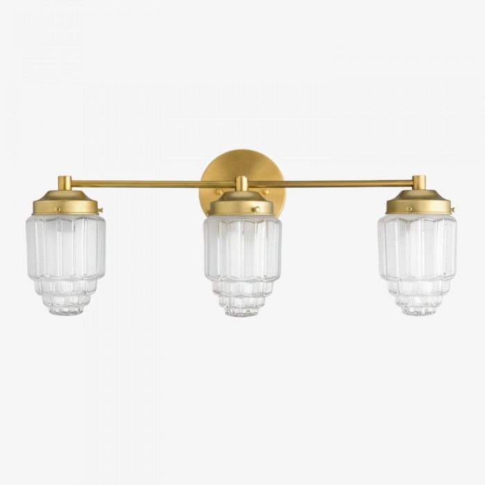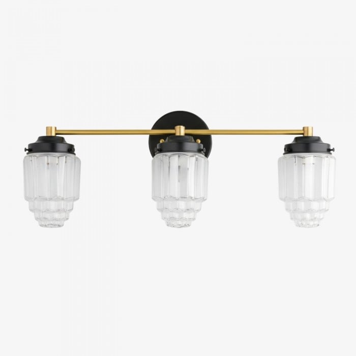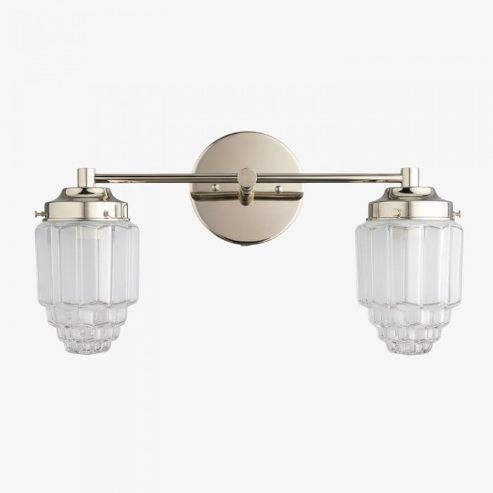 Lámpara de tocador de vidrio Tierlux - Lámpara de baño Art Déco con pantallas Skyscraper HL1660