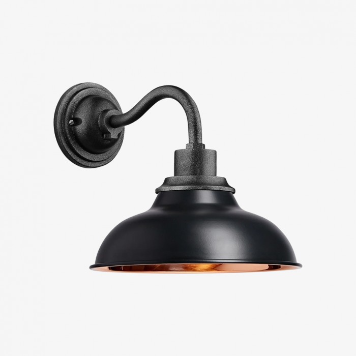 El aplique de pared metálico Industrial Dome combina el encanto vintage con un diseño duradero. Su clásica silueta de cuello de cisne estilo granero y su acabado en bronce envejecido crean una estética atemporal, mientras que su construcción metálica resistente a la corrosión garantiza un uso fiable en exteriores durante todo el año.