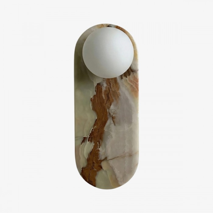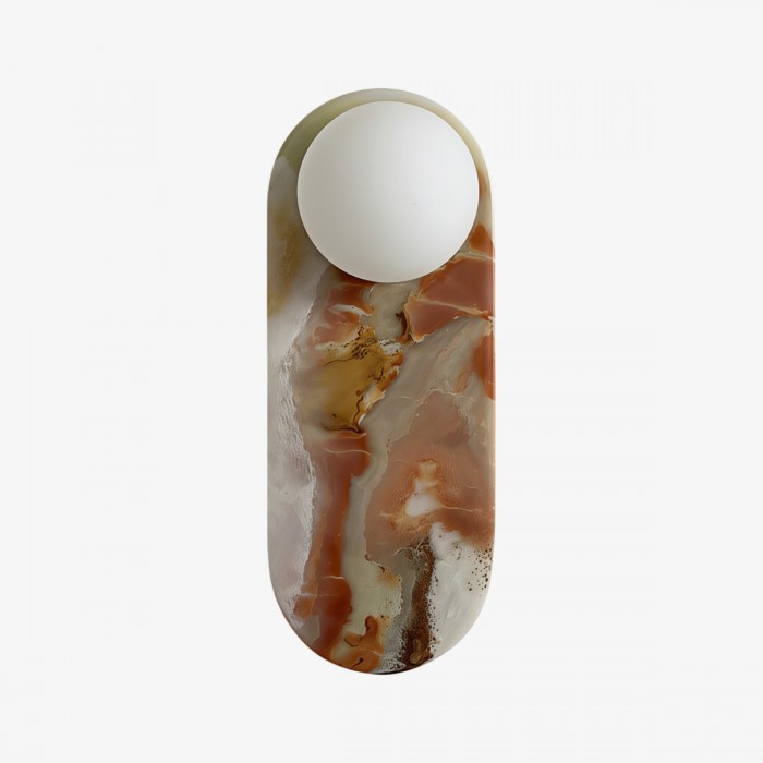 La lámpara de pared Vinbrea combina el diseño de mediados de siglo con la textura de la piedra natural. Cada pieza presenta patrones orgánicos únicos, lo que la convierte en una lámpara irrepetible. Emite una luz cálida y suave, ideal para dormitorios, pasillos y espacios interiores sofisticados.