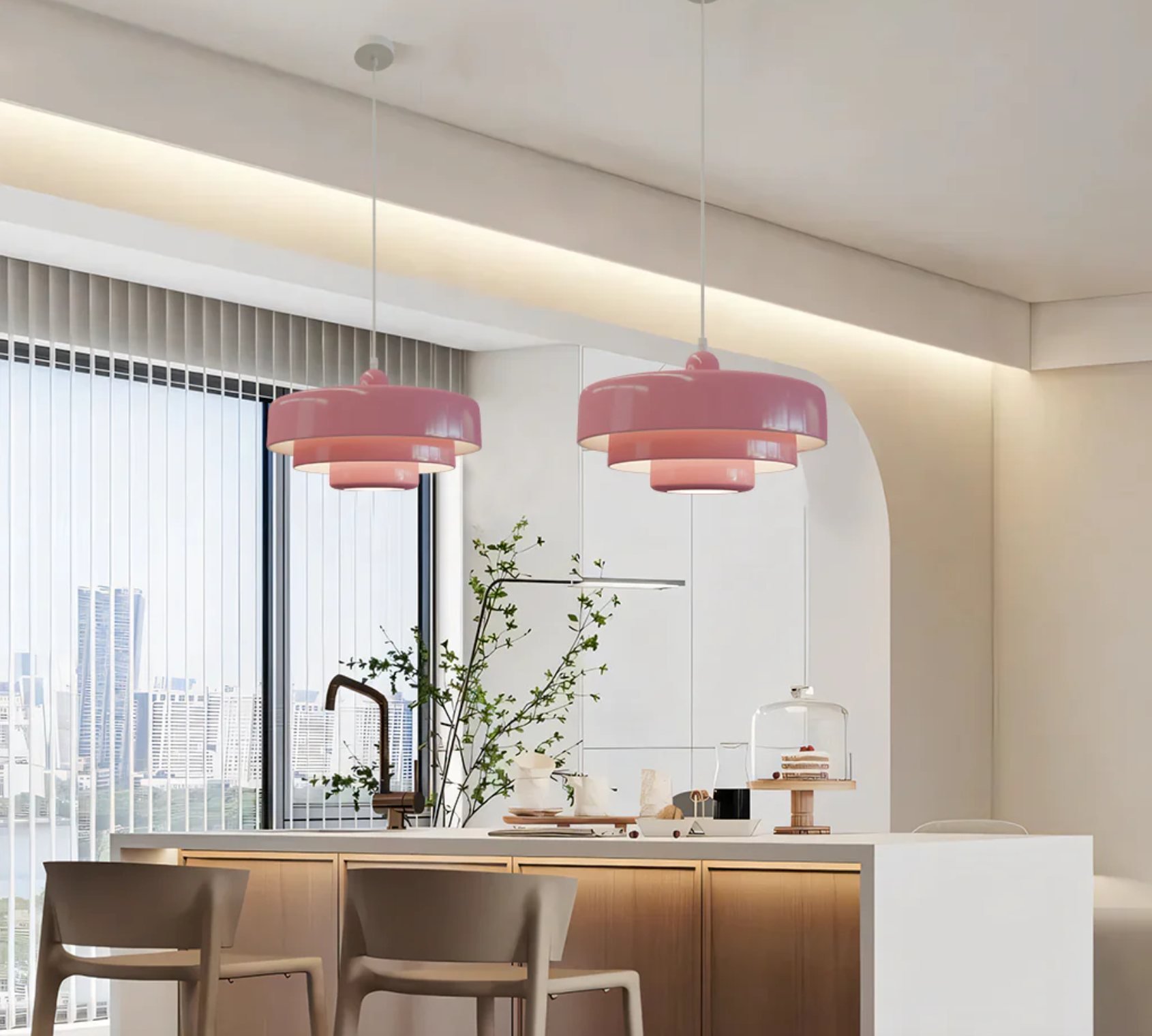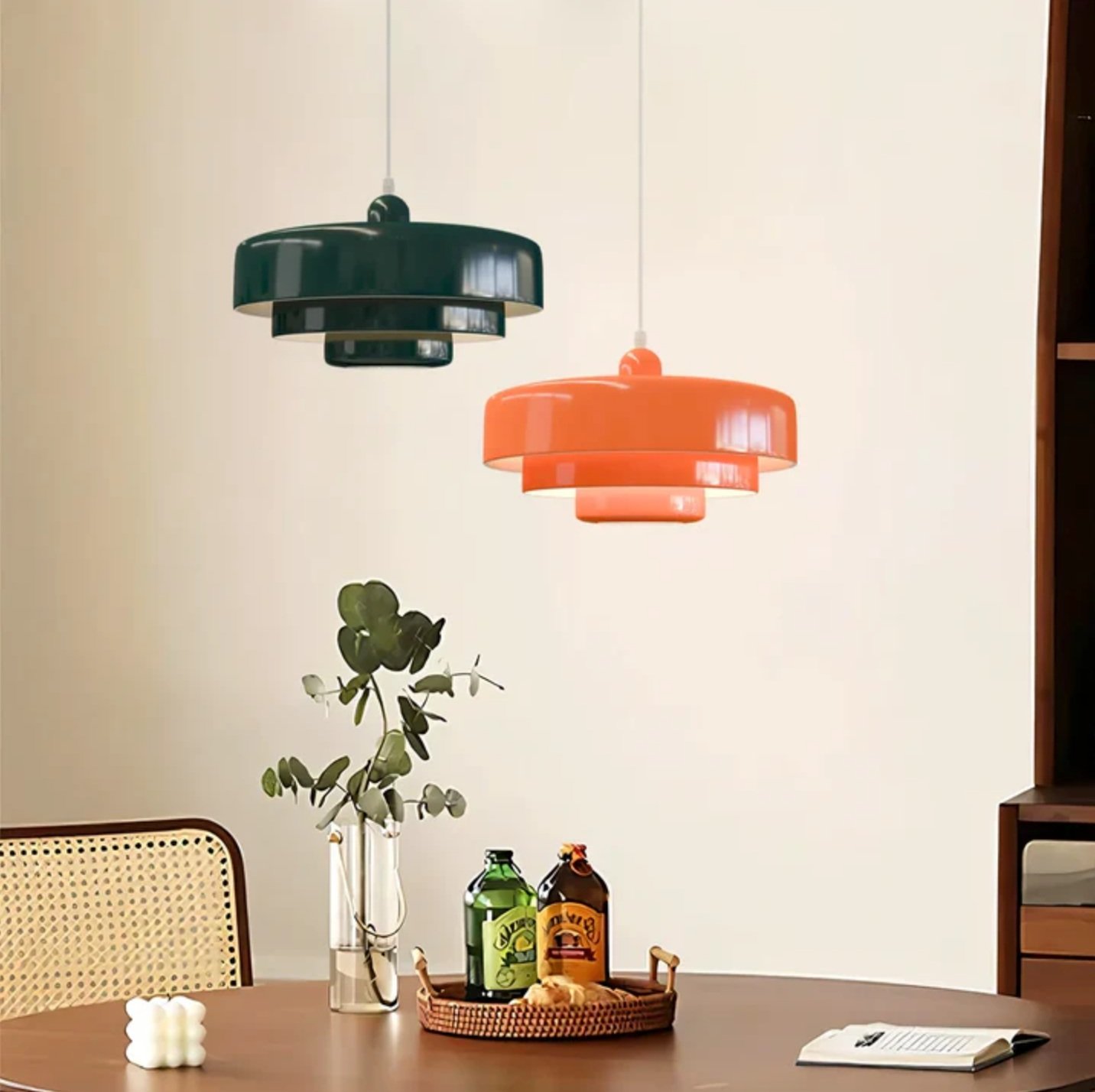 La suspension Bauhaus met en valeur les formes géométriques et l'esthétique fonctionnelle. Les lampes Macaron apportent une touche de couleur et de douceur, tempérant la rigidité des luminaires Bauhaus et adoucissant l'atmosphère.